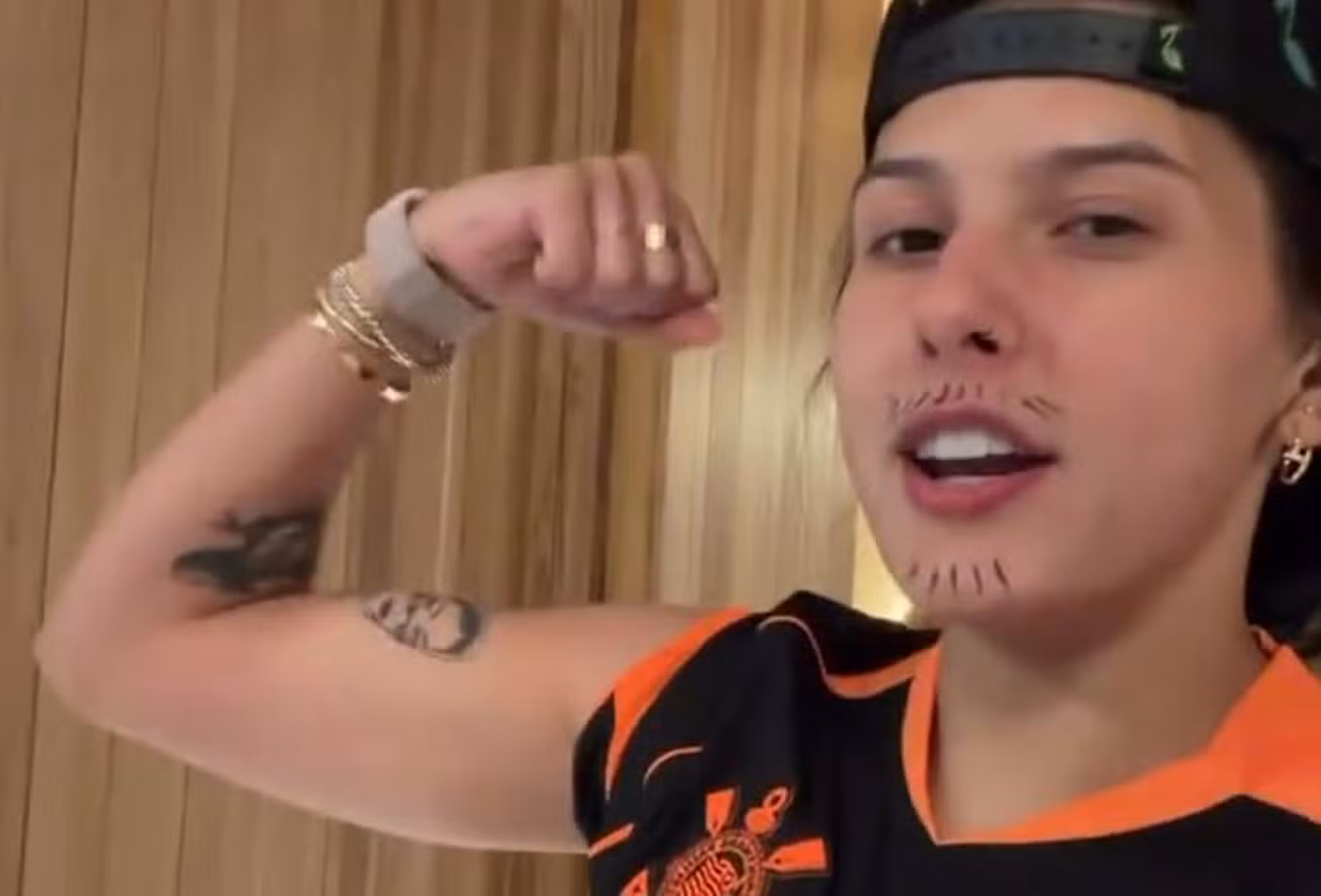 A cantora Ana Castela, de 21 anos, chamou atenção nas redes sociais ao surgir caracterizada “como homem” durante uma festinha com amigas, realizada na noite desta quarta-feira (8). Com regata, boné, bermuda e uma barba falsa, a sertaneja voltou a interpretar o divertido personagem Juninho Agroplay, figura já conhecida pelos fãs.