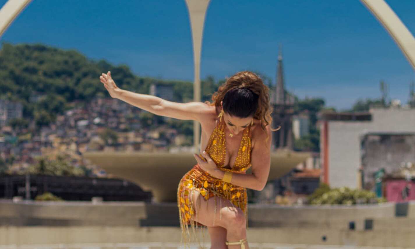 Prestes a completar 20 anos de Marquês de Sapucaí, a musa da educação, Tatiana Breia, protagonizou um ensaio especial na Praça da Apoteose, palco maior da folia carioca. Toda trabalhada no dourado, a musa da União da Ilha participou de um vídeo especial a convite do amigo Pahby.
